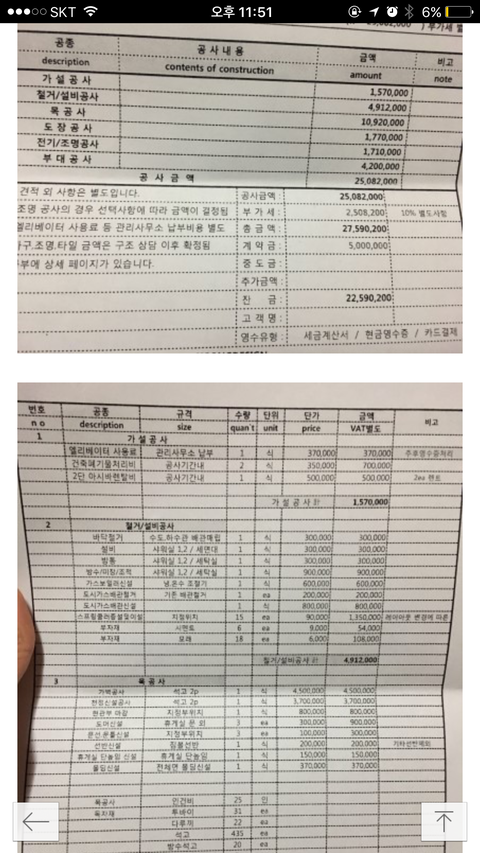 말도안되는 공사금액과 계속 바뀌는 견적서로 인해