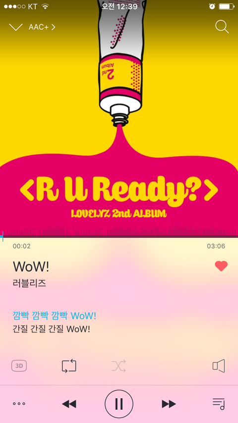 와우 처음에는 진짜 내스타일 아니라고생각했는데 듣다보니까 중독성 장난아니네요ㅋㅋㅋ...단지 좀 아쉬운건 좀 신나다가 다시 가라앉는기분...?그리고 코디님ㅜㅜㅜㅜ활동때는 더 예쁜옷입혀줘요ㅠㅠㅠㅠ개인적으로 제일 좋아하는 러블리즈 컨셉은 그대에게!!이번컨셉도 뭔가 신선해서 좋아요 대박나세용