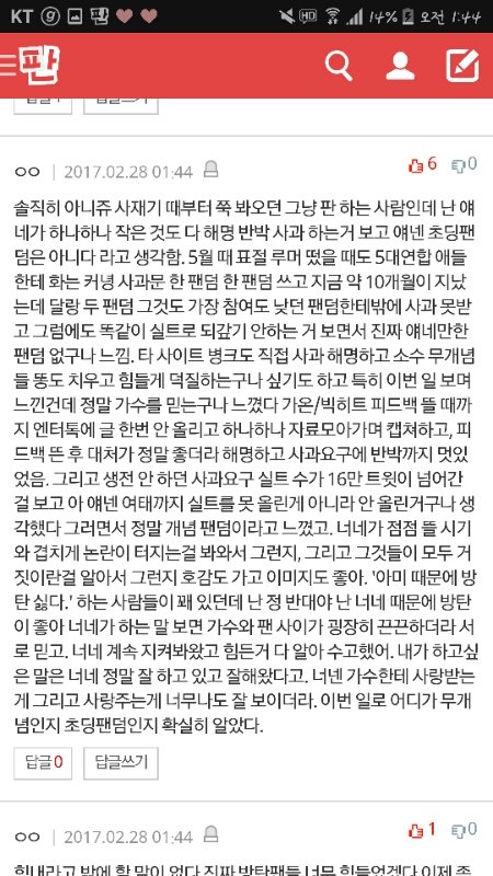 아 우리때메 방탄이 좋대 진짜 제일 기분좋은 칭찬.