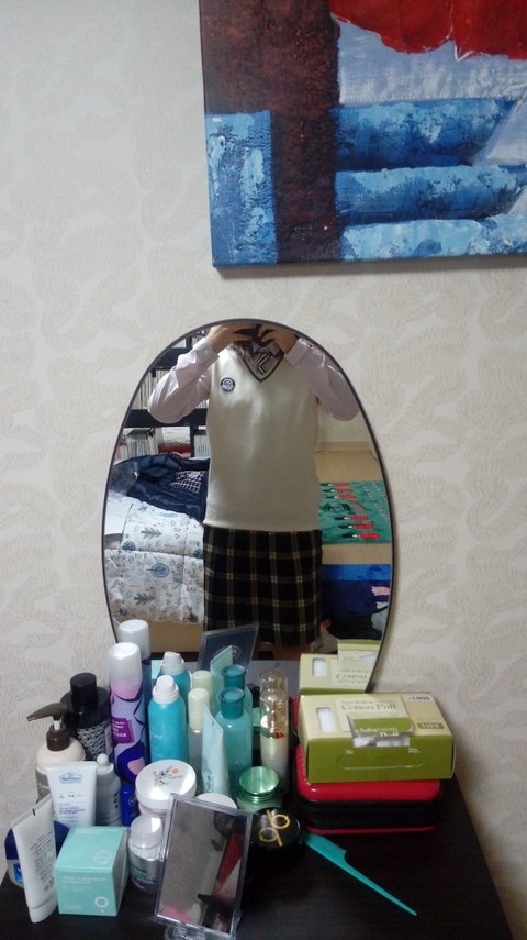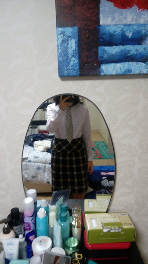 이렇게 입는거 맞니? 아까 저녁에 첨으로 교복 받아서 입어본건데... 미치겠다 긴장돼ㅠㅠㅠ