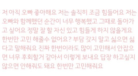 정말 한번이라도 안잡으면 엄청 후회할거같고 힘들어서 보내보려는데 어때? 고칠점이나 별로인거같으면 말해줘 보내는거 자체가 별로이면 그냥 보내지 말라 해주고 헤어진지는 한 5주 된거같아
