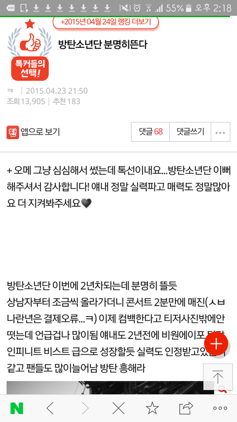 심심할 때 톡선 주행해봐 2014년부터 서서히 방탄 글 올라오기 시작하는데 기분 이상하다..ㅋㅋ