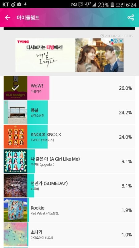 애들 일위야 !!! 하루에 세번 투표 가능하니까 세번 다 애들 투표해!!!!