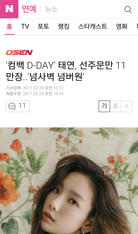 아니ㅋㅋㅋ 여자아이돌 혼자서 선주문량만 11만장인게 말이되냐ㅋㅋㅋㅋ 진짜 개쩐다 태연ㄷㄷ