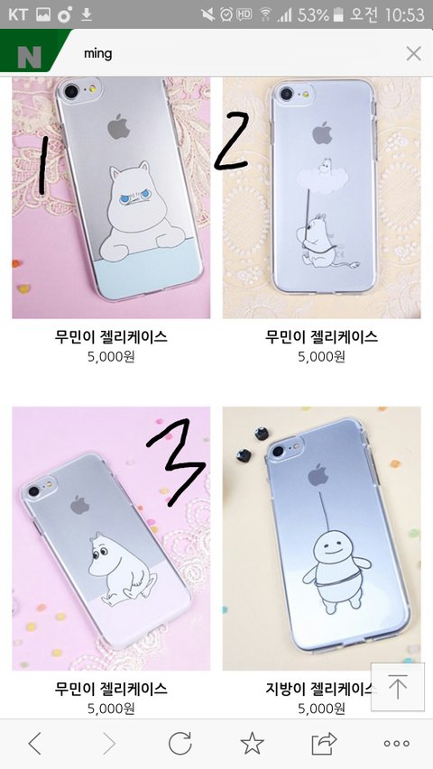 2개 골라주셈 무1민 3중에 하나랑 다른거 3개중에 하나 골라주셈 내 폰은 핑크색임