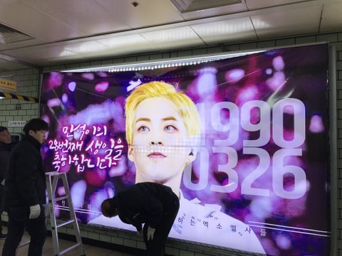 월드컵경기장 역에도 시우민 생일광고!!
