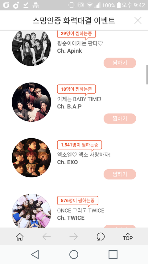 찜 일등인데 스밍인증횟수는 3등 밖이라 안보여