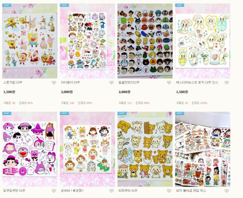 이러한 캐릭터들을 인쇄 하여 판매 하는 사람들은 거의다 네이버 스토어팜이며,