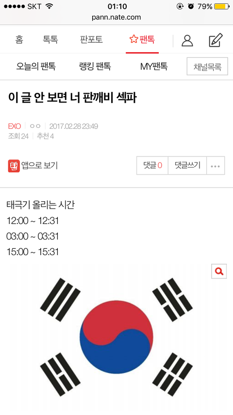 태극기 사진 올리는 시간 정했잖아 아님?