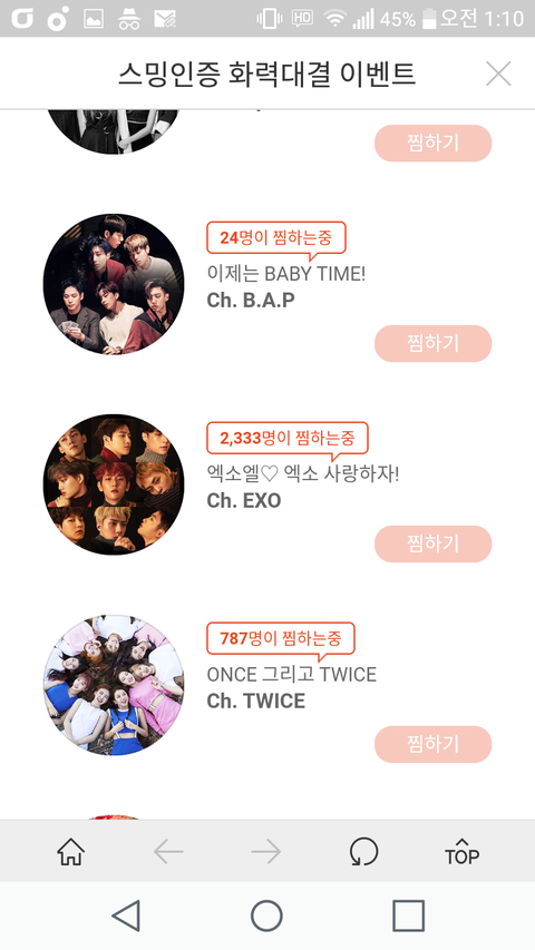 출석체크랑 엑소채널 찜 매일매일 해야되는거알지?