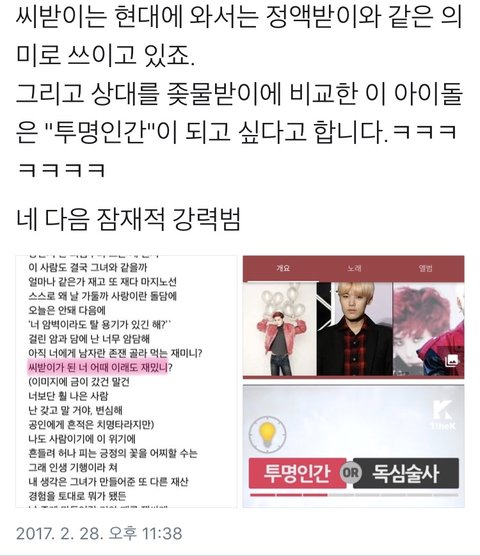 저계정들어가보니까 다른멤버까지 싸잡아서 여혐이라는데 ㅈㄴ 뭐지?