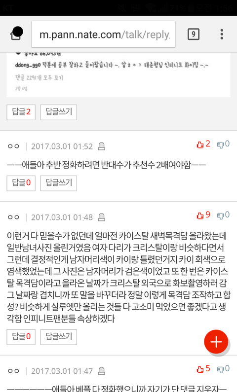 드디어 찬반 내려가고 베댓도 정화했어~~ 다행이다. 정말 수고했고 의도치 않은 타 가수 주의