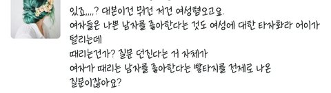 여자를 때리는게 비도덕적이라는게 어떻게 ㅇㅎ이냐ㅠㅠㅠ 어짜피 다 대본이겠지만