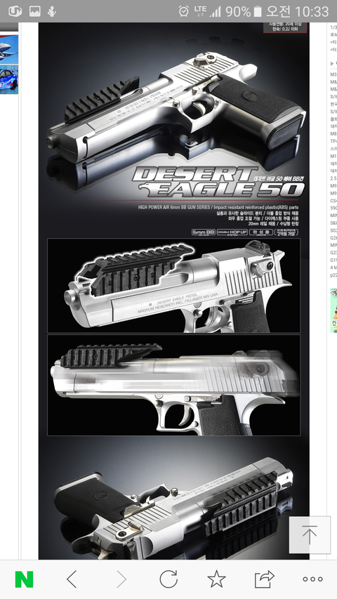 우리나라에는 다양한 회사의 데저트이글이 풀려있지만 사진처럼 레일마운트(검정부분)가 기본 장착된 제품은 아카데미과학의 데저트이글50 뿐이야 가격은 현재 25000원 이넹 ㅎ
