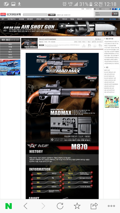 사진에서는 저격총 처럼 조준하셨는데 사실은 샷건이야(물론 조준 자세가 틀린건 아님) 이 제품은 전 세계적으로 우리나라에서만 판매하는 제품의 모양이라 한번에 알아봤어