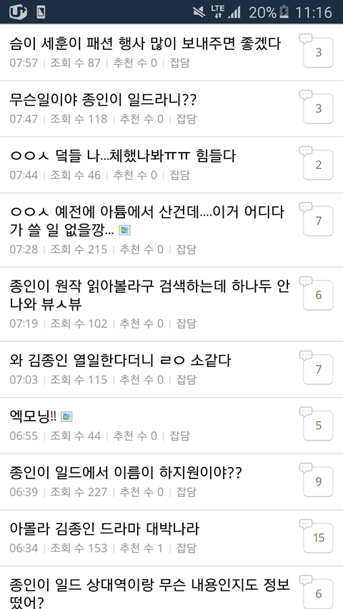 종인이 떡밥뜬 페이지부터 4페이지 다 뒤졌는데