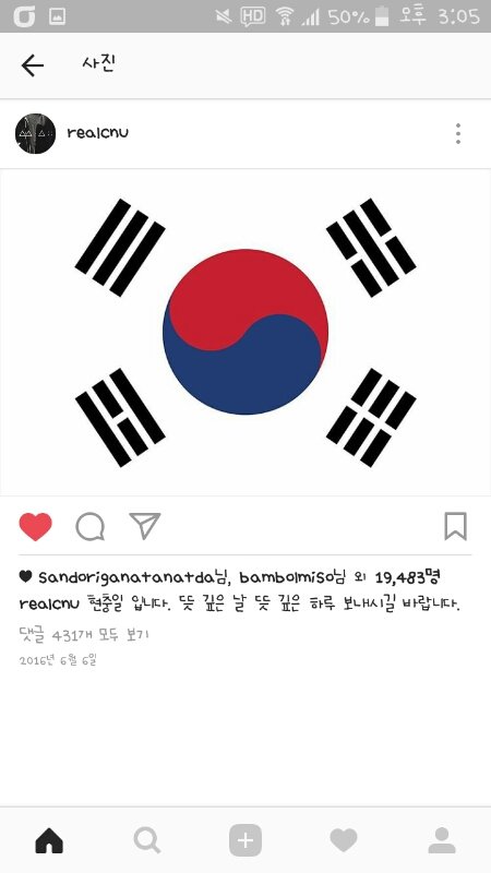 오늘 말고도 신우는 항상 기념일에 태극기사진을 올렸어!
