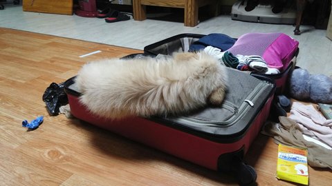 새로운거 좋아해서 내 짐위에서 잠