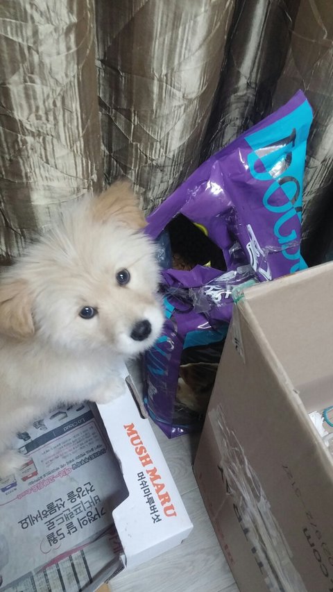 좀 컸다고 사료통 엎어서 다 줏어 먹기도 하고