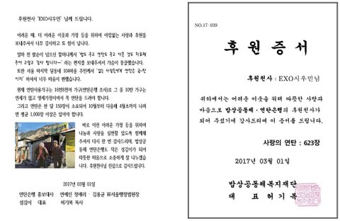 짹에 감자만두님 연탄기부!(시우민)
