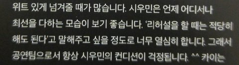 대충만 가져와도 이래^^ 나간둘기들도 민석이 얘기할때마다 온순하다 착하다 잘챙겨준다라는말이 항상 나옴 스텝들 칭찬은 가는데마다 너무 많아서 다 찾지도 못해