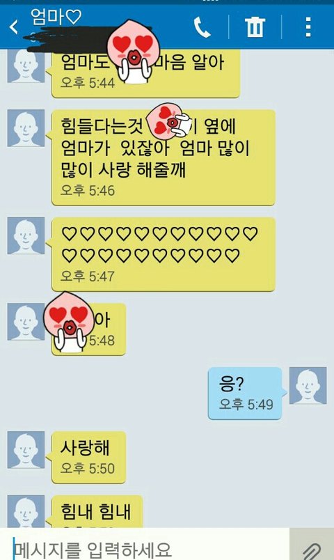 그래서 애들이 대놓고 나 야리고 꼽주고 그랬는데 오늘은 학교에서 일찍마쳐줘서 울면서 엄마한테 전화하고 문자했더니 엄마가 이런식으로 문자보냈는데 진심 통곡했음