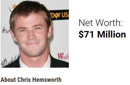 크리스 헴스워스 약 71밀리언 재력가 한국돈으로810억정도의 자산가