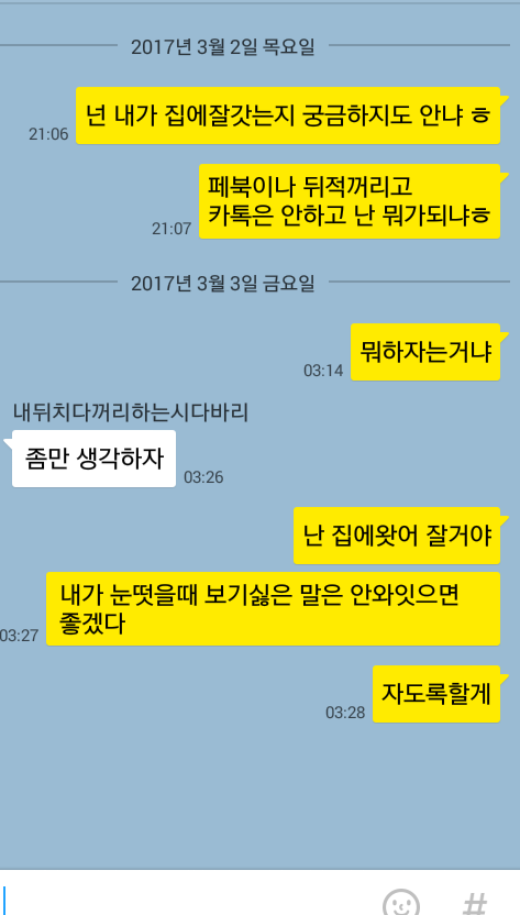 아니 그럴거면 전날 그냥 끝내지 왜 다시만난거야..