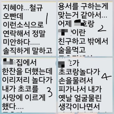그렇게 7년을 가족같이 산 초코를 죽여놓고 고소해서 벌금도내야돼고 합의금 100? 그것밖에 안되겠다니... 그러면서 진심으로사죄한다뇨...
