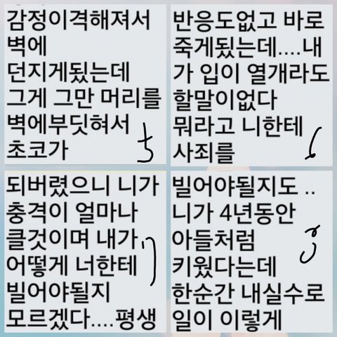 장난치지말라고 하니 진짜라고 말을하기에 머리는백짓장이되고 울기시작해서 울다가 엄마한테전화해서 말하니 엄마도울고 뭐하냐며 빨리가보라고