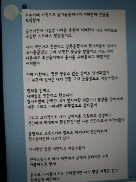 제앞에선 사과하는척...뒤에서하는말과 앞에서하는말이 너무달라서 소름이끼치는데....우리나라 동물보호법은 너무 최악이네요....