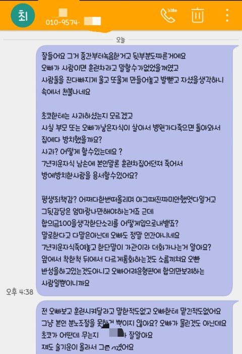 처음에는 내려놓다가 라고하더니 던졌다는것까지 인정해놓고선 끝까지 훈련차래요...