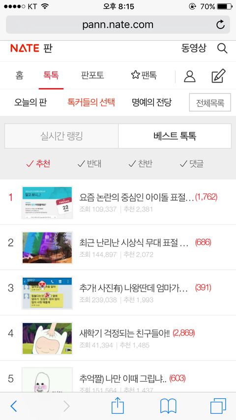 베스트톡톡에 떠있어