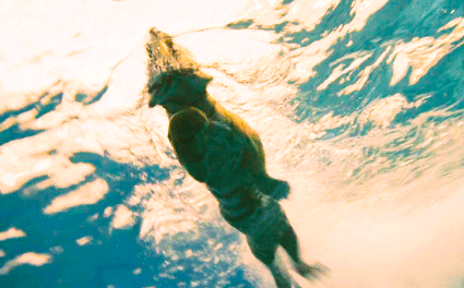 호랑이가 고양이과 동물이라 물속에 도망가면 안전하겠지.gif