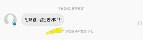 반배정 나왔을때 펨메 한 거 같은데 못 봄 ㅅㅂㅜㅜㅜ 지금 보고 대화 수락 함