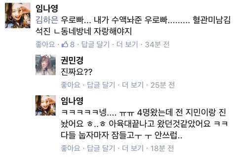 지민이랑 석진이 수액맞았었나보ㅓ