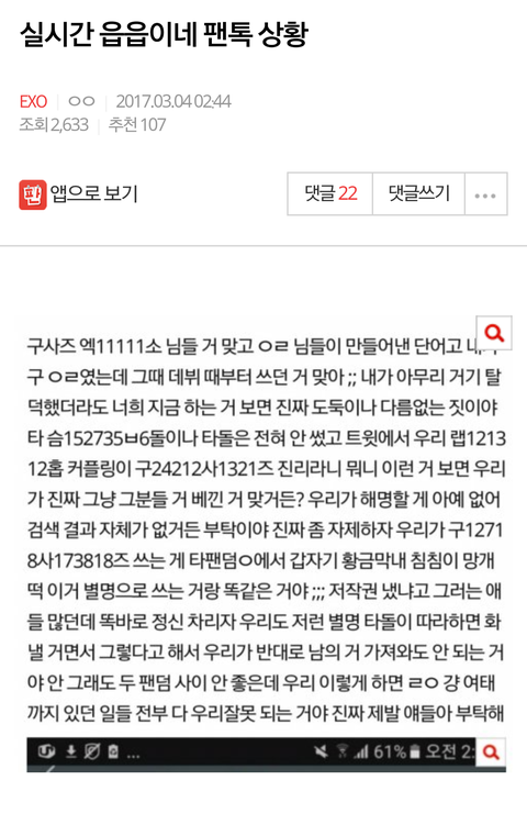 ㅇㅅ팬톡에서 방탄 아미 욕함