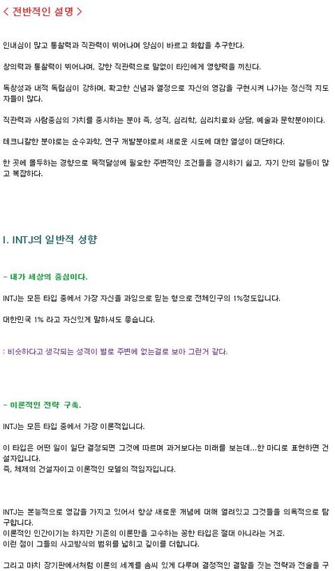 나 mbti 할때마다 인티제이나와서 intj성향, 성격 검색해봤거든? 근데 개소름... 거의다맞음ㅇㅇㅋㅋㅋㅋㅋㅋㅋㅋㅋㅋㅋㅋㅋㅋㅋㅋ