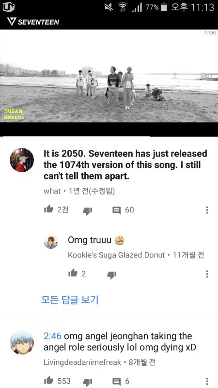파트스위치 버전 댓글에 2050년에 아낀다의 1047번째 버전이 나온다고 외국팬이ㅋㅋ 다음문장은 모르겄다..
