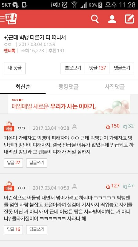 이딴 댓글들 너네가 쓰고있는거 맞아?
