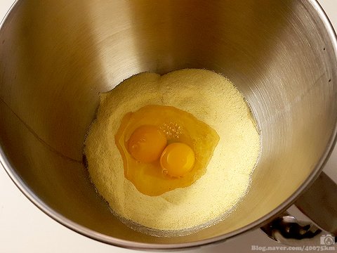 세몰리나 밀가루에 달걀 두 개 까넣고 즐거운 하루를 시작합니다.