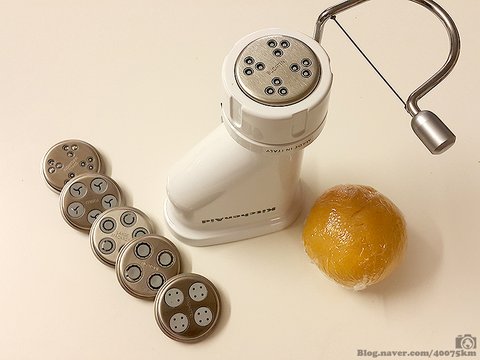 반죽을 뭉쳐서 숙성시키는 동안 파스타 기계의 디스크를 바꿔 끼워줍니다.
