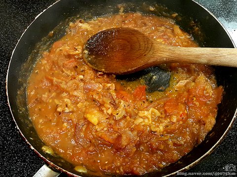 하지만 마늘과 양파에 바질은... 아무래도 정통 레시피에서 벗어났다고 할 수 밖에 없겠네요.