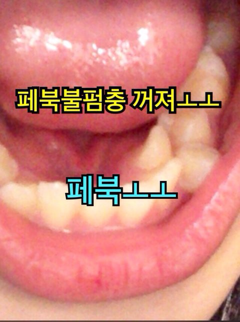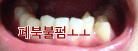 사진에서 보이는거처럼 지금 바깥쪽 이가 빠질것 같이 위태로움ㅜㅜ(준혁이랑 다솔이 페북도 위태롭지)