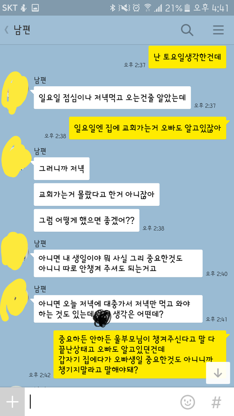 정확한 요일을 신랑에게 얘길한건 아니었지만, 일요일은 저희집 사정이 그러하단걸 신랑도 알고있으니 신랑과도 암묵적인 합의를 봤다고 혼자 착각했습니다.