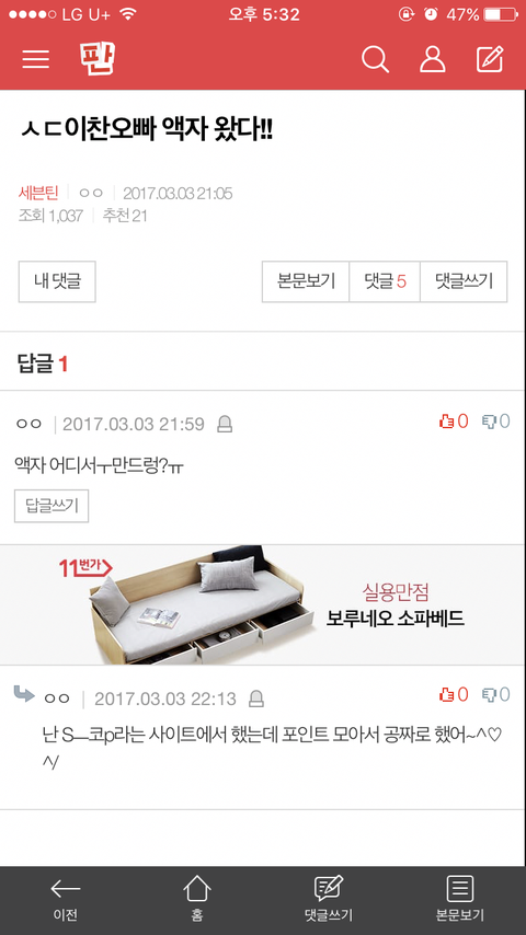 그 베스트에 있던 글 중에 찬이 액자 왔다는 글 있자나(근데 이런글 올려도 될려나..?? 혹시나 안된다면 댓글 좀 부탁해ㅠㅠ 규칙한번 읽고오긴했는데 딱히 해당되는건 없어보여서 올리긴한다만 그래도 불안해서ㅠㅠㅠ) 그거 댓글에 어디서샀냐는 말이 있던데 나도 궁금했거든 ㅠㅠㅠㅠ 근데 답글달아주신걸 봤는데