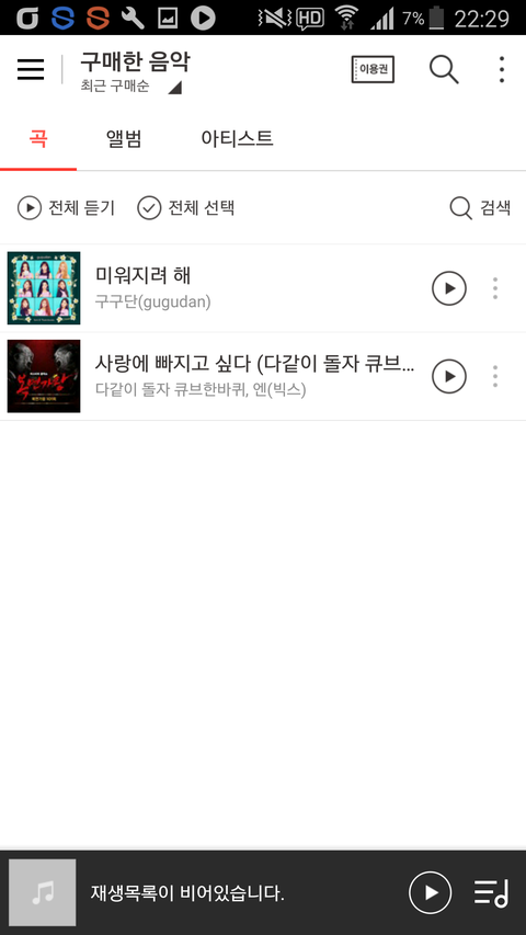 오랜만에 음원다운 인증♡