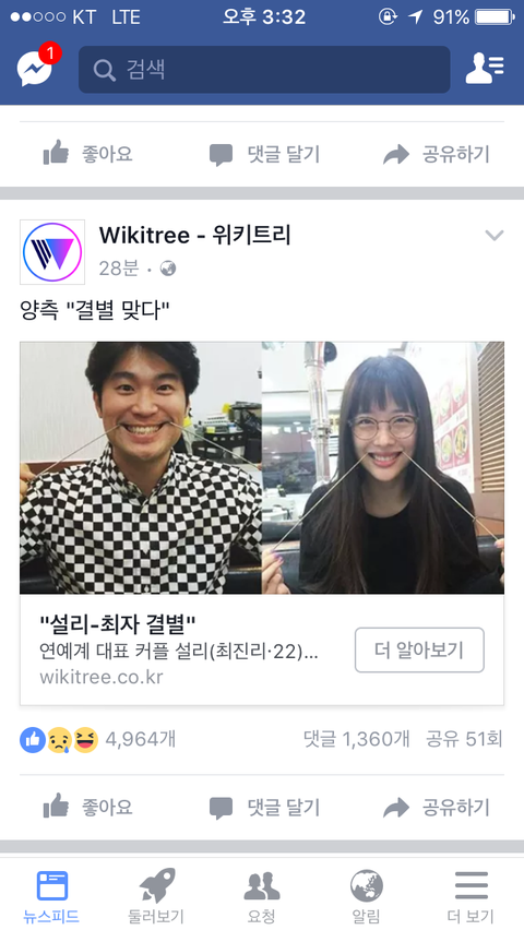 오늘 페북보는데 설리 얘기나와서 머지,,하고있었는데 헤어짐,,;