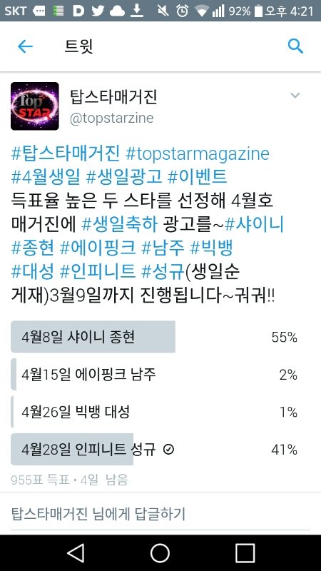 짹에 성규 생일 투표해 ㄱㄱ
