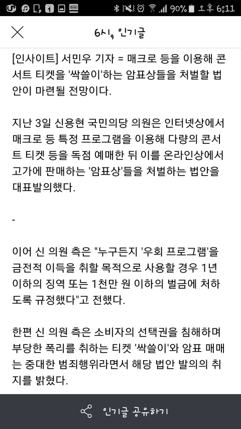 아이돌 티켓 "싹쓸이"암표상 이제 감옥간다